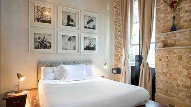 The choice of rooms is between suites and double rooms. Every room is unique and has a different style; but they all come with AC, ensuite bathroom, modern and contemporary art and all the amenities you could need. Nevertheless, suites are larger, with more spacious bathrooms, they all have a balcony or access to a terrace, a bathtub and larger art installations.